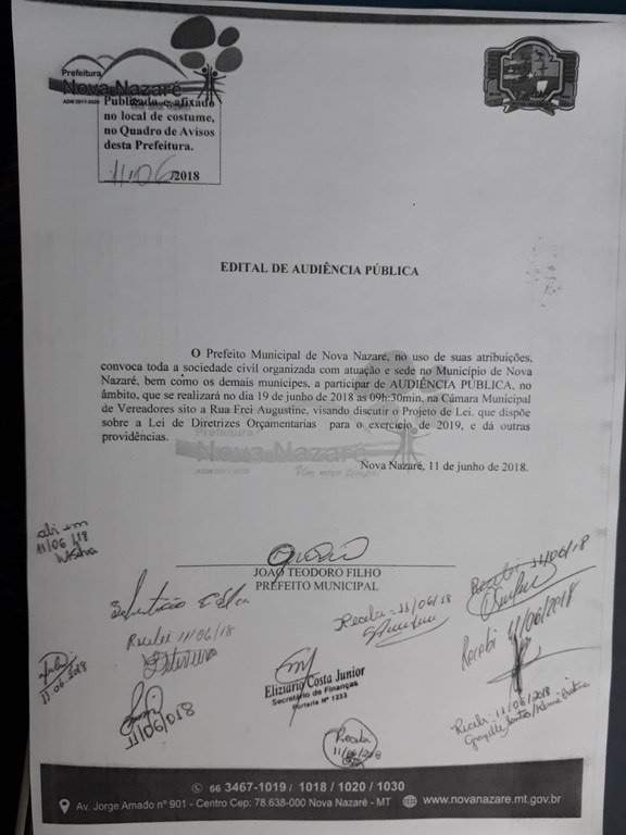 Edital de Audiência Pública a ser realizada no dia 19 de junho de 2018.