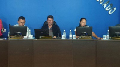 Ademar Matias dos Reis/PMDB, Patrícia Costa Gonçalves Reckziegel/PSD, Moisés André da Silva/PRB (Moisés da Balsa), Genecy Celestino de Souza/PTB, Rosana Aires de Souza Silva/PPS, Márcio Túlio Ribeiro/PSDB (Preto), Gilvan Luiz da Silva/PSDB (Pica Pau) e Lucélia Dias da Silva Carvalho/PSD acompanham o Presidente Narizinho na condução dos trabalhos na Câmara.